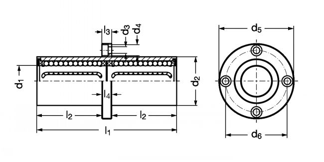 Douilles à billes tandem DBKB STFM avec bride ronde centrale exécution longue - modèle B81-DBKB-STFM