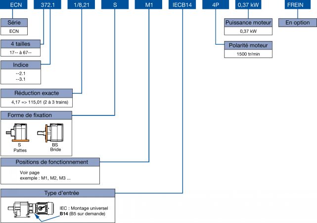 | EXEMPLE DE COMMANDE : | ECN372.1-1/8,21-S-M1-IECB14-4P-0,37KW |