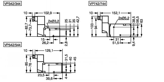 Electrodistributeur 3/2 NF NO série VP série SY à commande électrique monostable - modèle VP-3/2-E/R