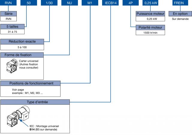 | EXAMPLE OF ORDER : | RVN63-15-NU-M1-IECB14-4P-1,1KW |