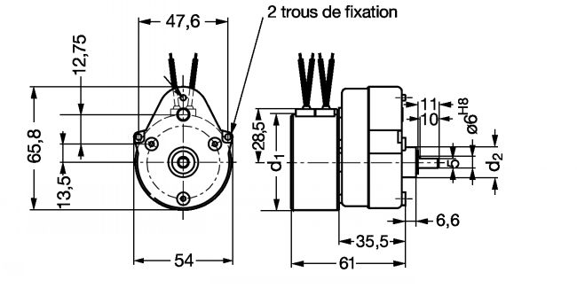 - Couple max. : 2 Nm (suivant vitesse de rotation).